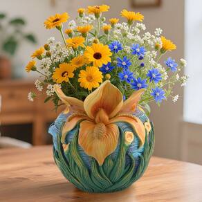 Material: Resina Peso: 700 g Tamanho: 20x20x21 cm Design floral artístico — Inspirado no céu estrelado de Van Gogh, este vaso apresenta um relevo 3D ousado de flores douradas com folhas verdes, tornando-o uma peça central exclusiva para decoração de casa ou escritório. Material de resina premium — Feito de resina de alta qualidade, este vaso de flores é robusto, leve, impermeável e resistente ao desbotamento ou rachaduras, perfeito para uso prolongado em ambientes internos ou externos. Decorativo e funcional — funciona perfeitamente como uma escultura decorativa e como um prático vaso de plantas para suculentas, ervas e pequenos arranjos florais em qualquer espaço de vida. Tamanho generoso — Medindo 20x20x21cm, este plantador oferece amplo espaço para várias plantas, mantendo uma estética artística adequada para mesas, prateleiras ou expositores de jardim. Posicionamento versátil — ideal para salas de estar, quartos, varandas, pátios e escritórios; aprimora temas de interiores modernos, boêmios ou artísticos com seu estilo floral vibrante.