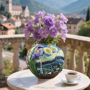 Material: Resina Peso: 380 g Tamanho: 14,5 x 14,5 x 13,5 cm Design artístico — Inspirado na Noite Estrelada de Van Gogh, este plantador apresenta um relevo 3D texturizado de céus rodopiantes e íris florescendo, adicionando um charme artístico único a qualquer espaço. Material de resina durável — Feito de resina de alta qualidade, este vaso de flores é robusto, leve e resistente ao desbotamento ou rachaduras, garantindo um uso decorativo duradouro. Decoração versátil — Perfeita para sala de estar, quarto, escritório, varanda ou tela de mesa; aprimora a decoração de interiores enquanto serve como um vaso de plantas funcional. Tamanho ideal — mede aproximadamente 14,5 x 14,5 x 13,5 cm, adequado para plantas pequenas a médias, como suculentas, ervas ou arranjos florais decorativos. Peça de declaração criativa — Este vaso redondo funciona como uma escultura ornamental, combinando praticidade com arte, tornando-o uma peça central para a decoração moderna da casa.
