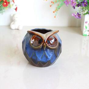 Material: cerâmica Peso: 800 g Tamanho: 11,5 x 11 x 11,5 cm 🦉 Design elegante de coruja — Vaso de flores criativo em forma de coruja com grandes olhos redondos e textura detalhada de penas, trazendo um toque divertido e artístico à sua decoração. Material cerâmico durável — Feito de cerâmica de alta qualidade com acabamento em esmalte de forno brilhante, resistente e fácil de manter para o uso diário. Tamanho prático — Medindo 11,5 x 11 x 11,5 cm, perfeito para abrigar suculentas, cactos, ervas ou pequenas plantas verdes, ideal para espaços compactos. Vasos de plantio versáteis — adequados para desktops, peitoris de janelas, varandas, jardins ou escritórios; funciona como plantador e ornamento decorativo. Efeito artístico de esmalte — O esmalte azul exclusivo com variações de cores naturais garante que cada peça tenha um charme artesanal único.