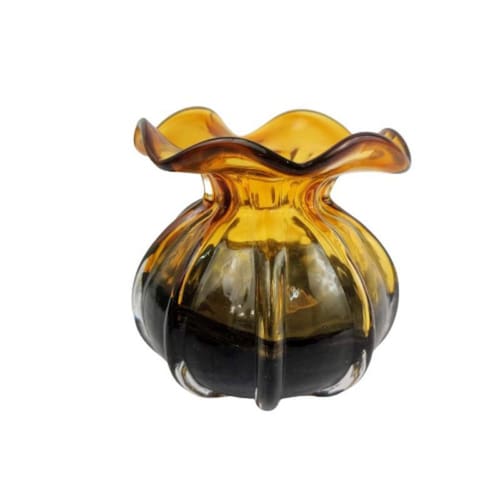 Vaso De Murano Trouxinha Ambar E Preto 12X11Cm Decoração