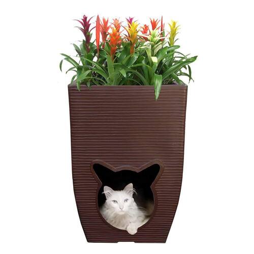 Vaso de planta com casa de gato produzido de resina de polietileno. Não acompanha a planta; Acompanha uma linda almofada dupla face; Medidas: 60cm de Altura 40cm de Largura 25cm de Profundidade 32cm de Base 4 Kg Medidas da porta: 23cm Altura 20cm Largura Grandes Vantagens do Polietileno Grande durabilidade, resistência e leveza; Podem ficar expostos ao sol, chuva, poeira e maresias; Podem ser mantidos em contato permanente com o solo; Impermeáveis e laváveis; Não prolifera fungos e bactérias; Não tóxico; Não mofam e não ressecam; Não soltam farpas ou rachaduras; Não desbotam; Não necessitam de manutenção; Possuem proteção contra raios ultra-violeta UV Duram mais que concreto, cerâmica, fibra e outros Ean: 7898679670241