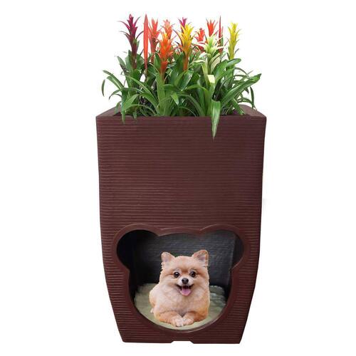 Vaso de planta com casa de cachorro produzido de resina de polietileno. Não acompanha a planta;Acompanha uma linda almofada dupla face;Medidas:80cm de Altura50cm de Largura50cm de Profundidade40cm de Base8 KgMedidas da porta:37cm Altura33cm LarguraGrandes Vantagens do PolietilenoGrande durabilidade, resistência e leveza;Podem ficar expostos ao sol, chuva, poeira e maresias;Podem ser mantidos em contato permanente com o solo;Impermeáveis e laváveis;Não prolifera fungos e bactérias;Não tóxico; Não mofam e não ressecam;Não soltam farpas ou rachaduras;Não desbotam;Não necessitam de manutenção;Possuem proteção contra raios ultra-violeta UV Duram mais que concreto, cerâmica, fibra e outros.