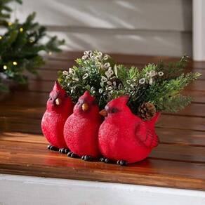 Material: Resina Peso: 300 g Tamanho: 16 x 10 x 9 cm Design de pássaro encantador: apresenta três cardeais vermelhos vivos sentados juntos, adicionando um toque alegre e inspirado na natureza à sua exibição de plantio. Artesanato de resina durável: feito de material de resina resistente, este vaso de flores é duradouro, resistente às intempéries e adequado para decoração interna e externa. Perfeito para suculentas: o design compacto de 16x10x9cm o torna ideal para suculentas, cactos, ervas ou pequenas plantas decorativas. Decoração versátil: funciona como um vaso de flores decorativo exclusivo para paisagismo de varanda, janela, sala de estar, escritório ou jardim. Artístico e prático: combina o uso funcional do plantio com o charme do ornamento artístico, ótimo para arranjos criativos de plantas domésticas ou de pátio.