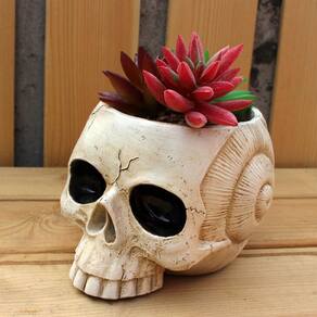 Material: resina Peso: 390 g Tamanho: 17 x 15 x 13 cm Design exclusivo do caracol de caveira: combina uma cabeça de caveira detalhada com um corpo em concha de caracol, criando um vaso assustador e criativo que se destaca na decoração de Halloween ou de inspiração gótica. Construção durável em resina: feito de resina premium, este vaso de flores é robusto, leve e resistente a rachaduras ou desbotamento, adequado para uso interno e externo de longa duração. Tamanho compacto e prático: medindo 17x15x13cm, oferece amplo espaço de plantio para suculentas, cactos, ervas ou flores pequenas, cabendo em mesas, varandas ou pátios. Halloween e sotaque gótico: perfeito para configurações de Halloween, festas temáticas ou decorações góticas do dia a dia, adicionando um toque peculiar e assustador às exibições de casa e jardim. Funcional e decorativo: funciona tanto como um prático vaso de plantio quanto como um ornamento de caveira atraente, aprimorando salas de estar, jardins ou espaços de escritório com um estilo único.