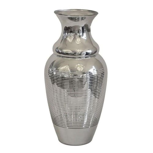 Vaso De Vidro Decorativo Prata Listras 49 X 25 Vaso decorativo em Vidro Prata Listrado 49 x 25 Vaso de vidro decorativo para decorar seu ambiente, seja para suas flores preferidas ou simplesmente como uma peça decorativa. Confeccionado em vidro prateado, listrado, trazendo elegânciaMedidas: Altura: 49 cm Diâmetro: 16 cm Largura: 25