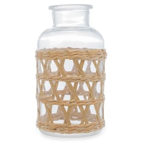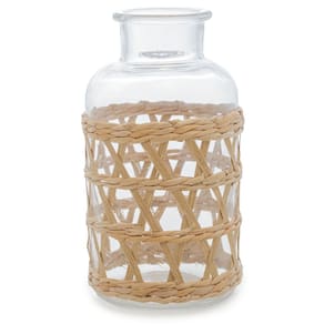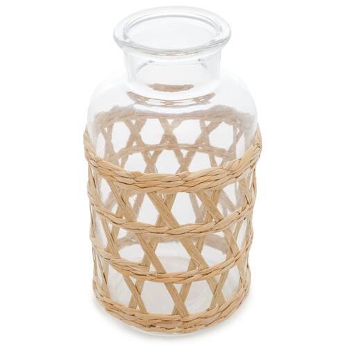 Descubra a harmonia entre o natural e o elegante com o Vaso de Vidro e Fibra Natural 10cm x 19,5cm da Wolff.