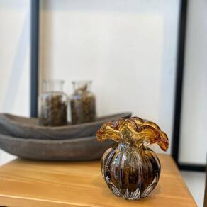 Vaso de Vidro Murano Italy Ambar e Marrom Lyor 11,5x9x11cm