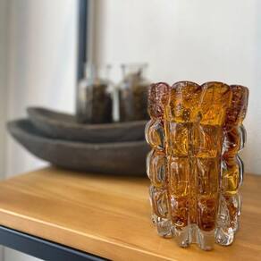 Vaso de Vidro Murano Italy Ambar Lyor 15x10cm