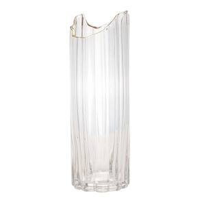 Vaso de Vidro Transparente com Borda Dourada para Flores Arranjos Plantas 10x30cm Wolff