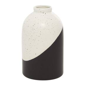 CARACTERÍSTICAS: VASO REDONDO: vaso alto com contraste de dois tons, apresenta acabamento em preto esmaltado e branco salpicado