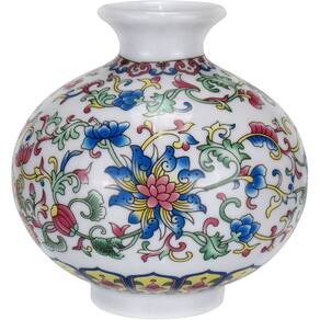 Altura: 14 cm Largura: 8 cm Profundidade: 8 cm Peso: 0,21 Kg Diâmetro da Base: 5 cm Diâmetro do Corpo: 8 cm Diâmetro do Topo: 4 cm Material: Ceramica Cor: Multicolorido