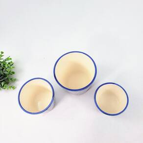 1 Trio de Vaso Cachepot Azul com Detalhes Mosaico Português 1 vaso pequeno, 1 vaso médio e 1 vaso grande