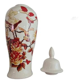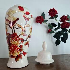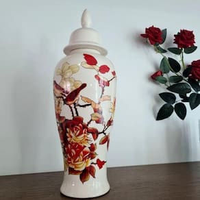 Vaso Decorativo Cerâmica Bege Floral Pássaros 46 X 15 Vaso decorativo em cerâmica