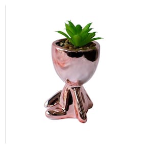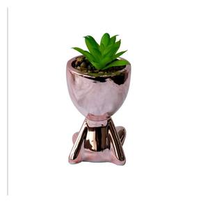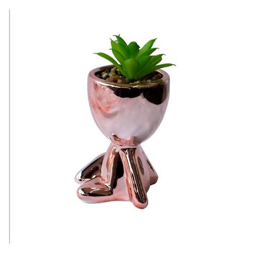 Vaso decorativo com pernas dobradas feito em cerâmica e suculentas artificial. Ideal para decorar racks, aparadores, estantes tornando o ambiente muito mais elegante e moderno.