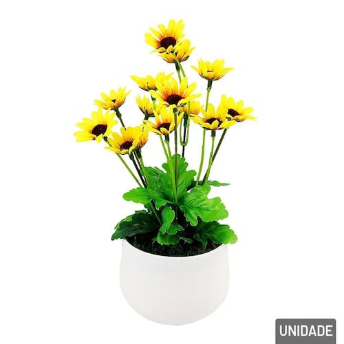 Vaso Decorativo de Plástico 27cm com Girass� O Vaso Decorativo de Plástico 27cm com Girassóis é uma peça encantadora que traz a beleza vibrante dos girassóis para dentro de sua casa. Com 27 cm de altura, o vaso combina a leveza e a resistência do plástico com a estética realista das flores, criando um visual alegre e acolhedor. Ideal para decorar mesas, prateleiras ou cantos, ele acrescenta um toque de natureza e luminosidade ao ambiente. Seu design moderno e cores vivas fazem dele uma opção versátil, que combina com diferentes estilos de decoração, desde os mais rústicos até os mais contemporâneos.\nEspecificações Marca : TINGS\nTipo de material : Plástico Cores ou Estampa : Amarelo, Verde, Branco Dimensões do Produto : 27 X 9,5 X 9,5 CM Dimensões da Embalagem : 28 X 11,5 X 11,5 CM Peso Bruto (Gramas) : 0.133 O que vem na Embalagem 1 Vaso de Plastico