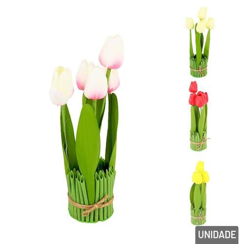 Vaso Decorativo de Plástico 28cm com Flores Este elegante Vaso Decorativo de Plástico com 28cm de altura é a escolha perfeita para adicionar um toque de cor e sofisticação ao seu ambiente. Com Flores Artificiais delicadamente dispostas, as flores coloridas trazem vida e frescor ao espaço, sem necessidade de cuidados constantes. Seu design moderno e prático combina com diversos estilos de decoração, seja na sala de estar, escritório ou até mesmo no quarto. Feito em plástico resistente, o vaso é leve e fácil de manusear, oferecendo um visual encantador e duradouro. Ideal para quem deseja beleza sem complicação.\nEspecificações: Marca : TINGS Tipo de material : Plástico Cores ou Estampa : Color Dimensões do Produto : 28 X 7 X 7 CM Dimensões da Embalagem : 28 X 7 X 7 CM Peso Bruto (Gramas) : 0.078 Disponível em cores. O que vem na Embalagem 1 Vaso de Plastico