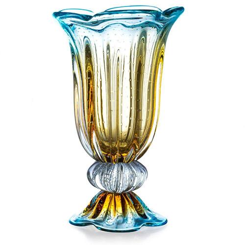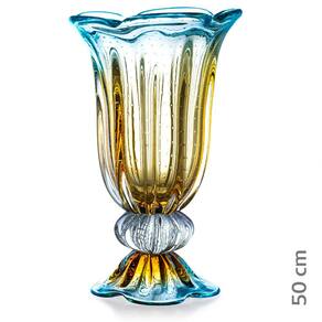 O Vasos De Cristal São Marcos são peças versáteis e podem ser usadas para decorar casas e ambientes dos mais variados estilos. A tradição do Cristal Murano e a inovação em detalhes, formas e cores, trazem requinte para a decoração. O colorido do Murano tornasse um coringa na decoração e produz um efeito muito bonito em locais com luz natural, não dependendo de nenhum outro elemento para se destacar. As peças em Cristal Murano são atemporais, aposte nelas como a estrela da decoração ou ainda para harmonizar em combinações com diferentes artigos para compor um ambiente. Ficha Técnica Marca: São Marcos Material: Cristal Murano Cor: Azul Produto: Vaso Comprimento aproximado: 31cm Largura aproximada: 31cm Altura aproximada: 50cm Peso aproximado: 11540g Junto com as peças em Murano, leve ainda um pouco de história. Uma dica é misturar diferentes Muranos e criar sua coleção de arte particular. O cristal Murano, tornouse objeto de desejo por suas caracteristicas únicas. Sendo assim, com todas essas particularidades, ele é uma ótima escolha para decorar, colecionar e ainda presentear com classe e sofisticação. A peça é produzida 100% artesanalmente com a técnica secular e originária da Itália, a qual com muita maestria e criatividade são desenvolvidas e preservadas no Brasil pela Cristais São Marcos desde 1962. Conteúdo Da Embalagem: 1x Vaso Em Cristal Murano Azul Assinado São Marcos