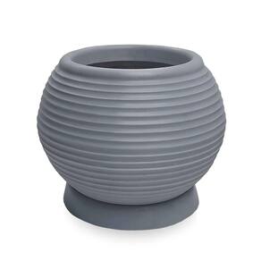 Vaso Decorativo Em Polietileno 30X40 + Prato Cinza Escuro