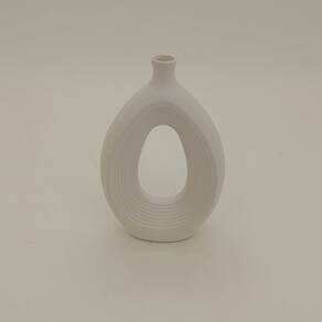 Altura: 25,5 cm Largura: 16 cm Profundidade: 6 cm Espessura: ,4 cm Peso: 0,67 Kg Diâmetro da Base: 9 cm Diâmetro do Corpo: 16 cm Diâmetro do Topo: 2,5 cm Material: Ceramica Cor: Branco
