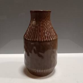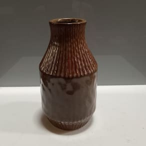 Altura: 21,6 cm Largura: 12 cm Profundidade: 12 cm Espessura: ,7 cm Peso: 0,75 Kg Diâmetro da Base: 8,5 cm Diâmetro do Topo: 5,5 cm Material: Cerâmica Cor: Marrom