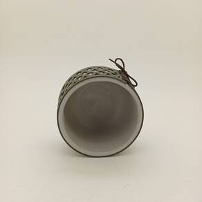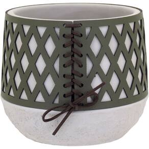 Altura: 12,5 cm Largura: 14 cm Profundidade: 14 cm Espessura: ,9 cm Peso: 1,10 Kg Diâmetro da Base: 10,5 cm Diâmetro do Topo: 13 cm Material: Cimento Cor: Verde