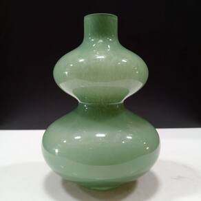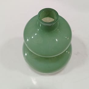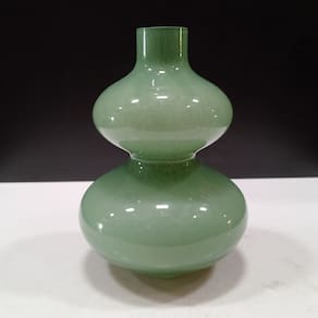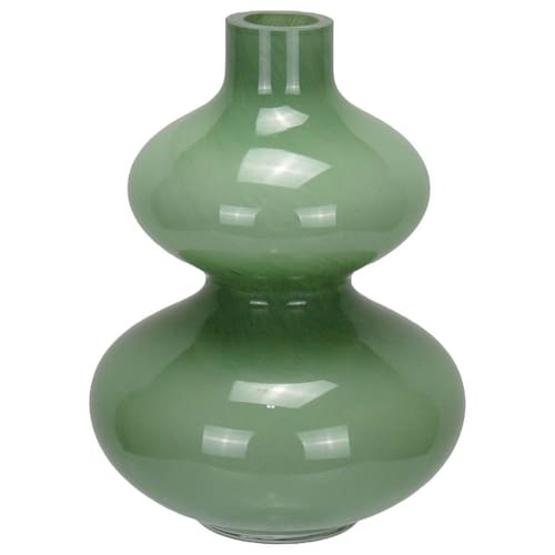 VASO Altura: 18,5 cm Largura: 14 cm Profundidade: 14 cm Espessura: ,4 cm Peso: 0,73 Kg Diâmetro da Base: 6 cm Diâmetro do Corpo: 10 cm Diâmetro do Topo: 2,7 cm Material: Vidro Cor: Verde