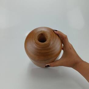 Altura: 20,4 cm Largura: 14,9 cm Profundidade: 14,9 cm Peso: 0,66 Kg Diâmetro da Base: 14,9 cm Diâmetro do Topo: 6 cm Material: Madeira Cor: Marrom
