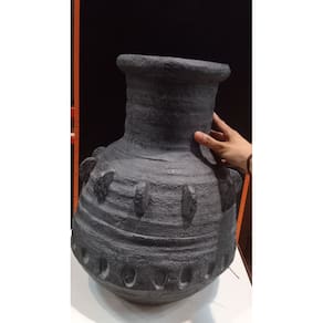 Altura: 50 cm Largura: 34 cm Profundidade: 34 cm Peso: 6,06 Kg Diâmetro da Base: 23 cm Diâmetro do Topo: 16,5 cm Material: Resina Cor: Cinza