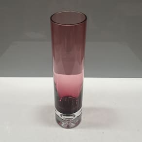 VASO Altura: 24,8 cm Largura: 6,1 cm Profundidade: 6,1 cm Espessura: ,4 cm Peso: 0,59 Kg Diâmetro da Base: 6,1 cm Diâmetro do Topo: 5,4 cm Material: Vidro Cor: Roxo