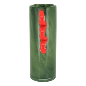Altura: 27,5 cm Largura: 16 cm Profundidade: 10 cm Espessura: ,9 cm Peso: 1,80 Kg Diâmetro da Base: 9,5 cm Diâmetro do Corpo: 10 cm Diâmetro do Topo: 8 cm Material: Vidro Cor: Verde