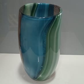 Altura: 27,6 cm Largura: 20 cm Profundidade: 20 cm Espessura: ,8 cm Peso: 2,18 Kg Diâmetro da Base: 9 cm Diâmetro do Topo: 18 cm Material: Vidro Cor: Multicolorido