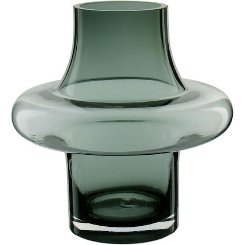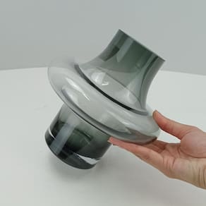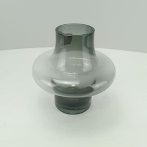 VASO Altura: 21 cm Largura: 19 cm Profundidade: 19 cm Peso: 1,04 Kg Diâmetro da Base: 9,9 cm Diâmetro do Topo: 8 cm Material: Vidro Cor: Fumê
