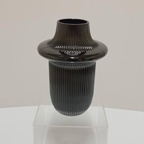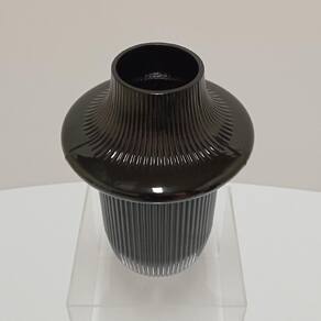 VASO DECORATIVO Altura: 21,5 cm Largura: 15,9 cm Profundidade: 15,9 cm Espessura: ,4 cm Peso: 0,63 Kg Diâmetro da Base: 6,5 cm Diâmetro do Topo: 6,1 cm Material: Vidro Cor: Preto