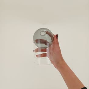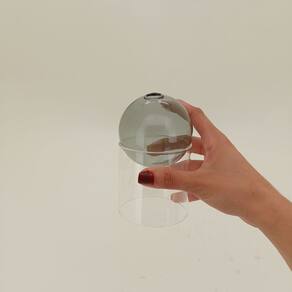 Altura: 13,5 cm Largura: 8 cm Profundidade: 8 cm Peso: 0,16 Kg Diâmetro da Base: 7,5 cm Diâmetro do Topo: 7,5 cm Material: Vidro Cor: Cinza