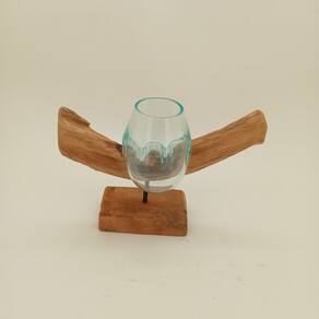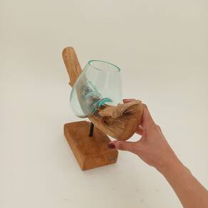 Altura: 27 cm Largura: 33 cm Profundidade: 9 cm Peso: 1,35 Kg Diâmetro da Base: 13,5 cm Diâmetro do Topo: 7 cm Material: Vidro/Madeira Cor: Azul