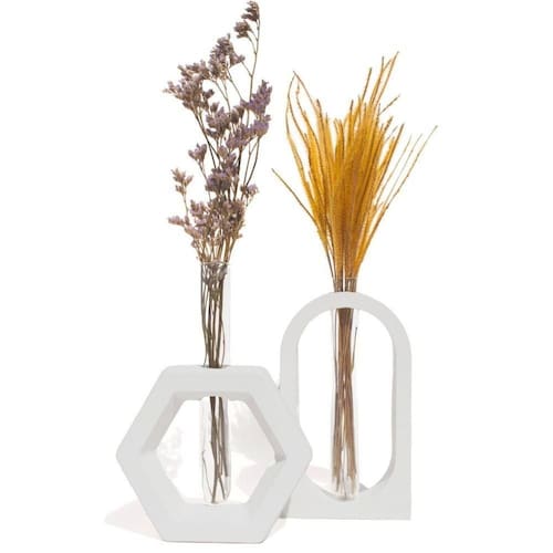 O Conjunto de Vaso Solitário Decorativo Janela e Hexa é perfeito para decorar prateleiras, racks e aparadores, unindo um estilo moderno a funcionalidade.