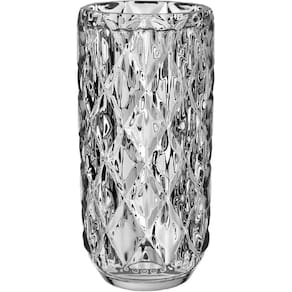 VASO Altura: 14,7 cm Largura: 6,8 cm Profundidade: 6,8 cm Peso: 0,53 Kg Diâmetro da Base: 4,8 cm Material: Vidro Cor: Transparente