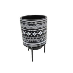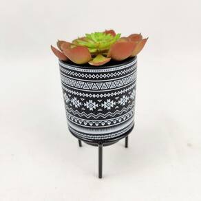 Vaso Decorativo Preto 12x7cm Cachepot Suporte Metal Ceramica Vem decorar, seja INIGUAL