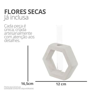 Conteúdo do 1 Vaso Decorativo Solitário Hexa 16,5cm Artesanal em Cimento
