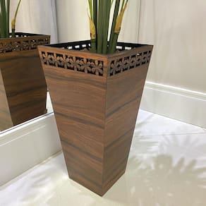Vaso decorativo trapézio honolulu peg bnpfsd 64cm Os vasos são peças importantes na decoração, trazendo harmonia e alegria aos ambientes residências e comerciais. Nossos vasos possuem design, cores e combinações que realçam ainda mais qualquer ambiente, combinando bom gosto criatividade e sofisticação. ------------------------------------------------------------------------------------------------------------- Especificações técnicas ------------------------------------------------------------------------------------------------------------- Largura: 32,50 cm Profundidade: 32,50 cm Altura: 64,00 cm Boca: 31,30 cm Base: 20,00 cm Litros: 47,00 Peso: 6,0 kg Cor: marron pf Material: mdf de primeira qualidade. : 3 meses contra defeito de fabricação. Limpeza: utilizar um pano macio flanela levemente umedecido com água ou lustra móveis Marca: creatus ------------------------------------------------------------------------------------------------------------- Ambientes -------------------------------------------------------------------------------------------------------------- -- hall de entrada O hall de entrada, certamente combina e necessita da presença de um vaso para enriquecer e requintar o ambiente, pois será o primeiro local a impressionar os amigos e visitantes. -- sala A sala com certeza é um dos locais em que o vaso harmoniza com elegância. Pois torna o ambiente mais aconchegante. -- empresas Os vasos também tem a função de alegrar ambientes empresariais, pois deixam o ambiente mais leve e suave. -- entradas de condominios Nas entradas de condomínios prediais e condomínios horizontais, os vasos além de beleza, deixa uma impressão de ambiente acolhedor e organizado. -- salões de beleza O mesmo podemos dizer para salões de beleza, onde uma decoração exemplar e um belo vaso pode ser o diferencial para atrair mais clientes e deixá-los aconchegados. ------------------------------------------------------------------------------------------------------------ Embalagem ------------------------------------------------------------------------------------------------------------- Nossos vaso são muito bem embalados, fazendo com que os riscos no transporte sejam reduzidos a quase nada. Caso acontecer um eventual dano no transporte, fazemos a reposição sem custo. ------------------------------------------------------------------------------------------------------------- Observação ------------------------------------------------------------------------------------------------------------- A planta constante no anúncio tem caráter ilustrativo e não acompanha o vaso. Uso exclusivo para plantas artificiais.