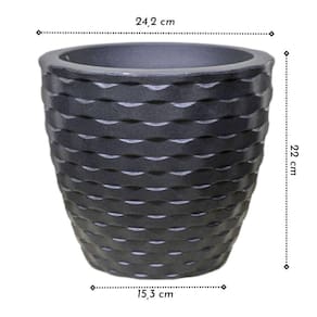 Características * Tamanho: N-22 * Altura: 22 cm * Largura (boca): 24,9 cm * Largura (fundo): 15,3cm * Capacidade: 6,5 Litros * Formato: Redondo * Cor: Preto * Material: PlásticoInformações/Dicas/Usos * Formato diferenciado, que lembra os elos de uma corrente