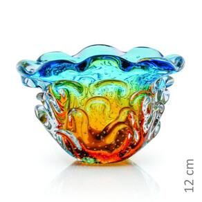 Vaso Em Cristal Murano Água Marinha E Âmbar São Marcos 20cm Vaso Em Cristal Murano Água Marinha E Âmbar - São Marcos é uma peça decorativa produzida 100% artesanalmente com a técnica secular e originária da Itália, a qual com muita maestria e criatividade são desenvolvidas e preservadas no brasil pela Cristais São Marcos desde 1962.