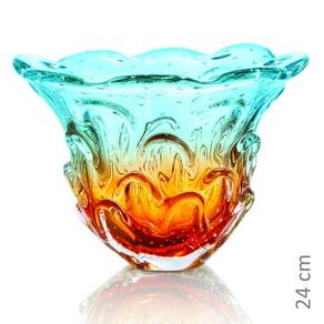 Vaso Em Cristal Murano Água Marinha E Âmbar São Marcos 41cm Vaso Em Cristal Murano Água Marinha E Âmbar - São Marcos é uma peça decorativa produzida 100% artesanalmente com a técnica secular e originária da Itália, a qual com muita maestria e criatividade são desenvolvidas e preservadas no brasil pela Cristais São Marcos desde 1962.