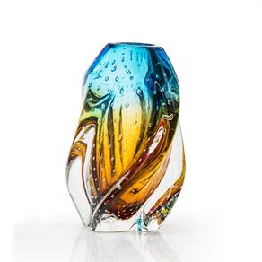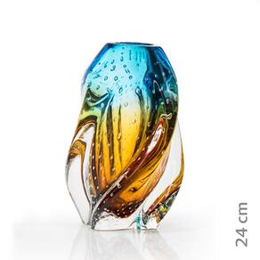 Vaso Em Cristal Murano Água Marinha E Âmbar São Marcos Comprimento:16cm Largura:27.6cm Altura:14.95cm Peso:4508g Produzida 100% artesanalmente com a técnica secular e originária da Itália, a qual com muita maestria e criatividade são desenvolvidas e preservadas no Brasil pela Cristais São Marcos desde 1962. As escolhas das peças são versáteis e podem ser usadas para decorar casas e ambientes dos mais variados estilos. A tradição do Cristal Murano e a inovação em detalhes, formas e cores, trazem requinte para a decoração. O colorido do Muranoem especial, torna-se um coringa na decoração e produzem um efeito muito bonito em locais com luz natural, não dependendo de nenhum outro elemento para se destacar. As peças em Cristal Murano, são atemporais, aposte nelas como a estrela da decoração ou ainda para harmonizar em combinações com diferentes artigos para compor um ambiente. Junto com as peças em Murano, leve ainda um pouco de história. Uma dica é misturar diferentes Muranos e criar sua coleção de arte particular. O cristal Murano, tornou-se objeto de desejo por suas caracteristicas únicas. Sendo assim, com todas essas particularidades, ele é uma ótima escolha para decorar, colecionar e ainda presentear com classe e sofisticação.
