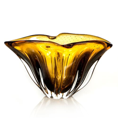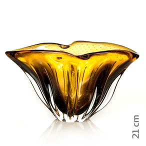 Vaso Em Cristal Murano Ambar E Lilas São Marcos Comprimento: 36cm Largura: 13cm Altura: 21cm Peso: 5180g Produzida 100% artesanalmente com a técnica secular e originária da Itália, a qual com muita maestria e criatividade são desenvolvidas e preservadas no Brasil pela Cristais São Marcos desde 1962. As escolhas das peças são versáteis e podem ser usadas para decorar casas e ambientes dos mais variados estilos. A tradição do Cristal Murano e a inovação em detalhes, formas e cores, trazem requinte para a decoração. O colorido do Muranoem especial, torna-se um coringa na decoração e produzem um efeito muito bonito em locais com luz natural, não dependendo de nenhum outro elemento para se destacar. As peças em Cristal Murano, são atemporais, aposte nelas como a estrela da decoração ou ainda para harmonizar em combinações com diferentes artigos para compor um ambiente. Junto com as peças em Murano, leve ainda um pouco de história. Uma dica é misturar diferentes Muranos e criar sua coleção de arte particular. O cristal Murano, tornou-se objeto de desejo por suas características únicas. Sendo assim, com todas essas particularidades, ele é uma ótima escolha para decorar, colecionar e ainda presentear com classe e sofisticação.