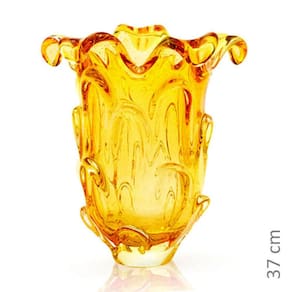 Vaso Em Cristal Murano Âmbar - São Marcos 37cm Vaso Em Cristal Murano Âmbar - São Marcos é uma peça decorativa produzida 100% artesanalmente com a técnica secular e originária da Itália, a qual com muita maestria e criatividade são desenvolvidas e preservadas no brasil pela Cristais São Marcos desde 1962. A tradição do cristal murano e a inovação em detalhes, formas e cores, trazem requinte para a decoração. O colorido do murano em especial, torna-se um coringa na hora de decorar e produz um efeito muito bonito em locais com luz natural, não dependendo de nenhum outro elemento para se destacar. As peças em cristal murano, são atemporais, aposte nelas como a estrela da decoração ou ainda para harmonizar em combinações com diferentes artigos para compor um ambiente. FICHA TÉCNICA Marca: São Marcos Modelo: Vaso Em Cristal Murano Âmbar - São Marcos Ref.: 4215AB Material: Cristal Murano Medidas A x C x L : 37 X 31 X 31 cm Peso: 8,130 Conteúdo Da Embalagem: 01 Vaso Em Cristal Murano Âmbar - São Marcos Junto com as peças em murano, leve ainda um pouco de história. Uma dica é misturar diferentes muranos e criar sua coleção de arte particular. O cristal murano, tornou-se objeto de desejo por suas características únicas. Sendo assim, com todas essas particularidades, ele é uma ótima escolha para decorar, colecionar e ainda presentear com classe e sofisticação. IMPORTANTE: Produto produzido de forma artesanal, são admitidas nas características finais do processo de produção desse produto pequenas variações de peso, formato, cor e ainda o aparecimento de minúsculas bolhas de ar, típicas do cristal murano.