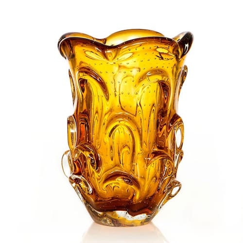 Vaso Em Cristal Murano Ambar São Marcos Comprimento:18cm Largura:18cm Altura:26cm Peso:5910g Produzida 100% artesanalmente com a técnica secular e originária da Itália, a qual com muita maestria e criatividade são desenvolvidas e preservadas no Brasil pela Cristais São Marcos desde 1962. As escolhas das peças são versáteis e podem ser usadas para decorar casas e ambientes dos mais variados estilos. A tradição do Cristal Murano e a inovação em detalhes, formas e cores, trazem requinte para a decoração. O colorido do Muranoem especial, torna-se um coringa na decoração e produzem um efeito muito bonito em locais com luz natural, não dependendo de nenhum outro elemento para se destacar. As peças em Cristal Murano, são atemporais, aposte nelas como a estrela da decoração ou ainda para harmonizar em combinações com diferentes artigos para compor um ambiente. Junto com as peças em Murano, leve ainda um pouco de história. Uma dica é misturar diferentes Muranos e criar sua coleção de arte particular. O cristal Murano, tornou-se objeto de desejo por suas características únicas. Sendo assim, com todas essas particularidades, ele é uma ótima escolha para decorar, colecionar e ainda presentear com classe e sofisticação. Ean: 7894728631607
