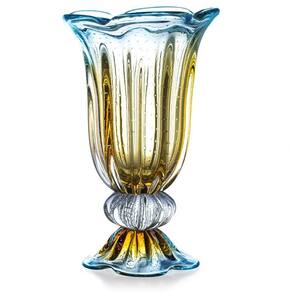 Vaso Em Cristal Murano Azul - Assinado - São Marcos 50Cm