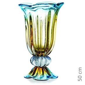 Vaso Em Cristal Murano Azul - Assinado - São Marcos 50cm