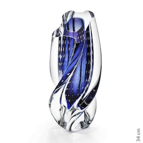O Vaso Em Cristal Murano Da São Marcos é uma peça decorativa produzida 100% artesanalmente com a técnica secular e originária da Itália, a qual com muita maestria e criatividade são desenvolvidas e preservadas no brasil pela Cristais São Marcos desde 1962. A tradição do cristal murano e a inovação em detalhes, formas e cores, trazem requinte para a decoração. O colorido do murano em especial, torna-se um coringa na hora de decorar e produz um efeito muito bonito em locais com luz natural, não dependendo de nenhum outro elemento para se destacar. As peças em cristal murano, são atemporais, aposte nelas como a estrela da decoração ou ainda para harmonizar em combinações com diferentes artigos para compor um ambiente. Ficha Técnica Marca: São Marcos Modelo: Vaso Em Cristal Murano Azul São Marcos Ref.: 4370 ZO Material: Cristal Murano Cor: Azul Medidas A x C x L : 34 x 15 x 15 cm Peso: 3.256g Conteúdo Da Embalagem: 01 Vaso Em Cristal Murano Azul - São Marcos Junto com as peças em murano, leve ainda um pouco de história. Uma dica é misturar diferentes muranos e criar sua coleção de arte particular. O cristal murano, tornou-se objeto de desejo por suas características únicas. Sendo assim, com todas essas particularidades, ele é uma ótima escolha para decorar, colecionar e ainda presentear com classe e sofisticação. IMPORTANTE: Produto produzido de forma artesanal, são admitidas nas características finais do processo de produção desse produto pequenas variações de peso, formato, cor e ainda o aparecimento de minúsculas bolhas de ar, típicas do cristal murano.
